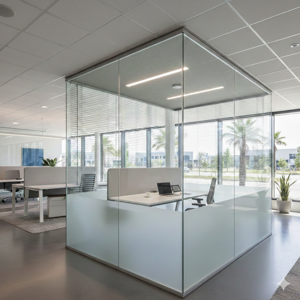 Solution d’aménagement professionnel à Gardanne : box confidentiel avec cloison semi-vitrée et faux plafond À Gardanne, dans la zone d’activité, la création de box confidentiel s’appuie sur l’installation d’une cloison amovible semi-vitrée équipée de stores à lames orientables intégrés. Ce type d...